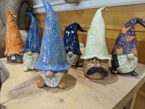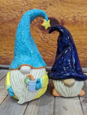 Join us for a fun workshop where you’ll learn to sculpt an adorable garden gnome, enjoy wine and snacks, and make new friends! Starting from scratch, I’ll guide you step-by-step in creating your own gnome. The basic form will be about 6″ tall, but once the body is shaped, you can add your own creative touches to make it unique. We’ll add color, let them dry, and then I’ll fire them with a clear glaze over your design. Your fully ceramic gnome will be ready to live outdoors through spring, summer, and fall, and will be available for pickup two weeks after the workshop. All materials, wine, and snacks are provided—feel free to bring your own drinks too!